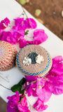 A handmade jewelry bag for gifting and/or protecting your jewelry is included