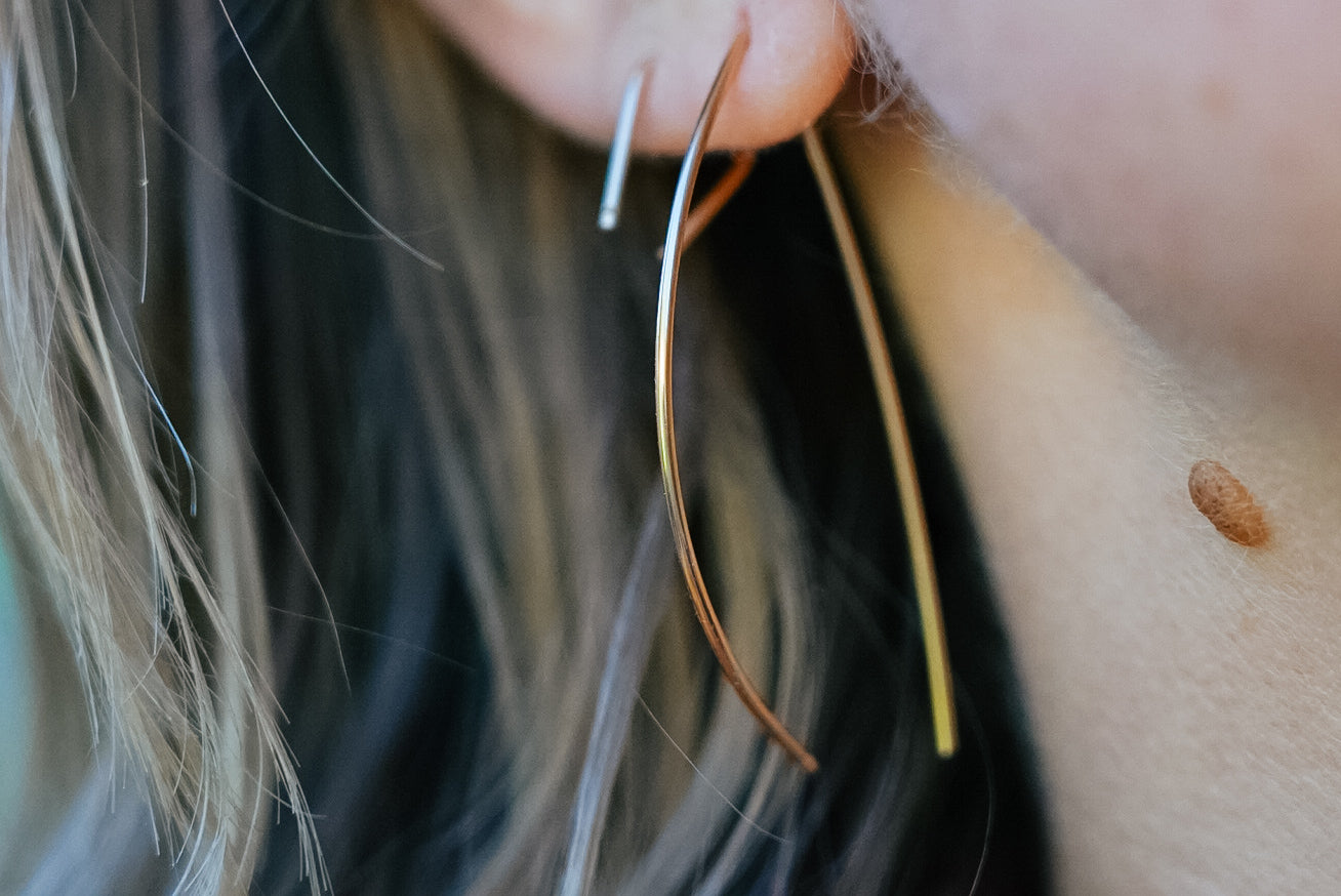 These handcrafted earrings are simple and will be your go-to earring for any outfit. The thicker wire and curved design makes sure they will stay in when you're venturing each day.