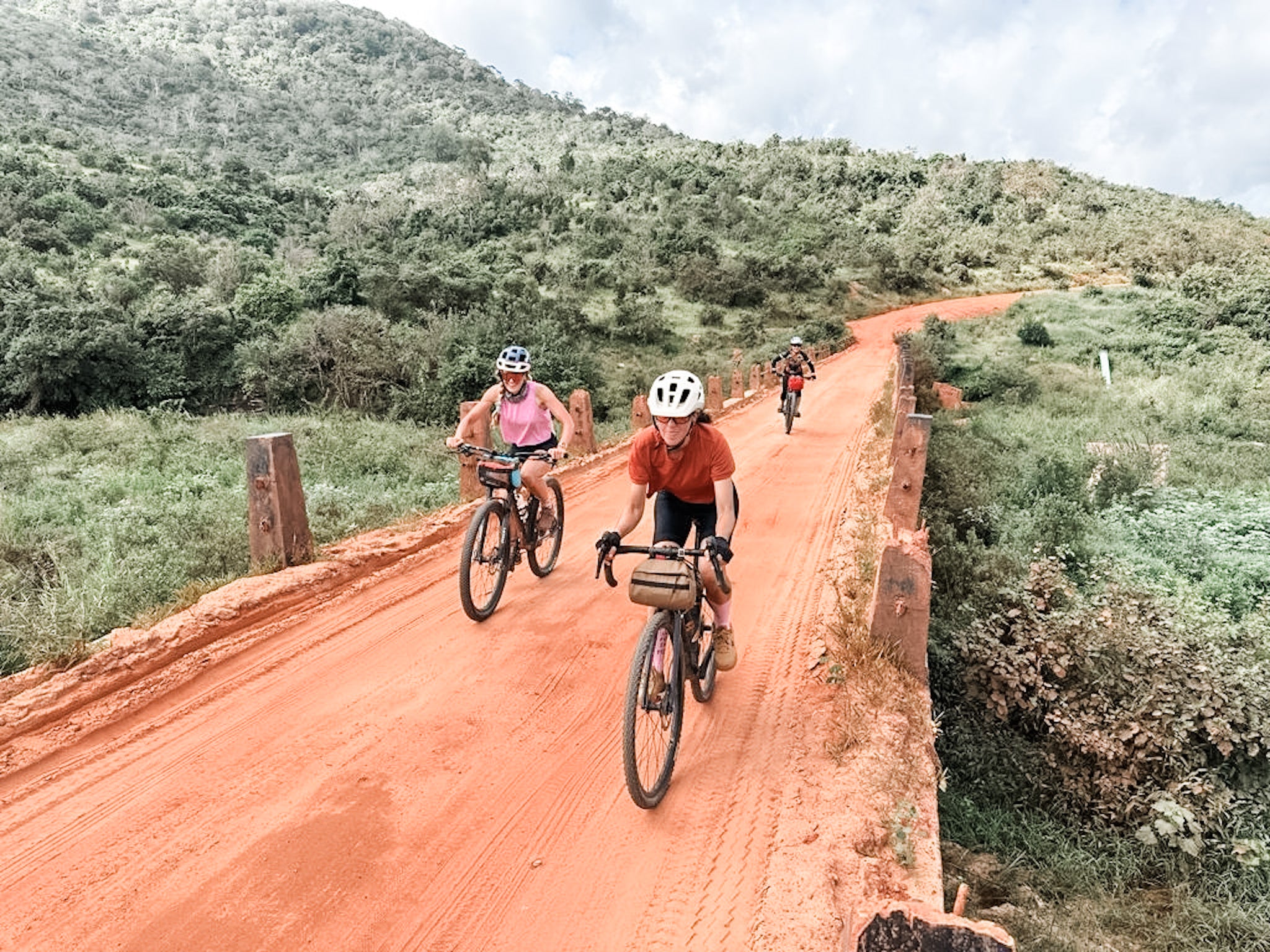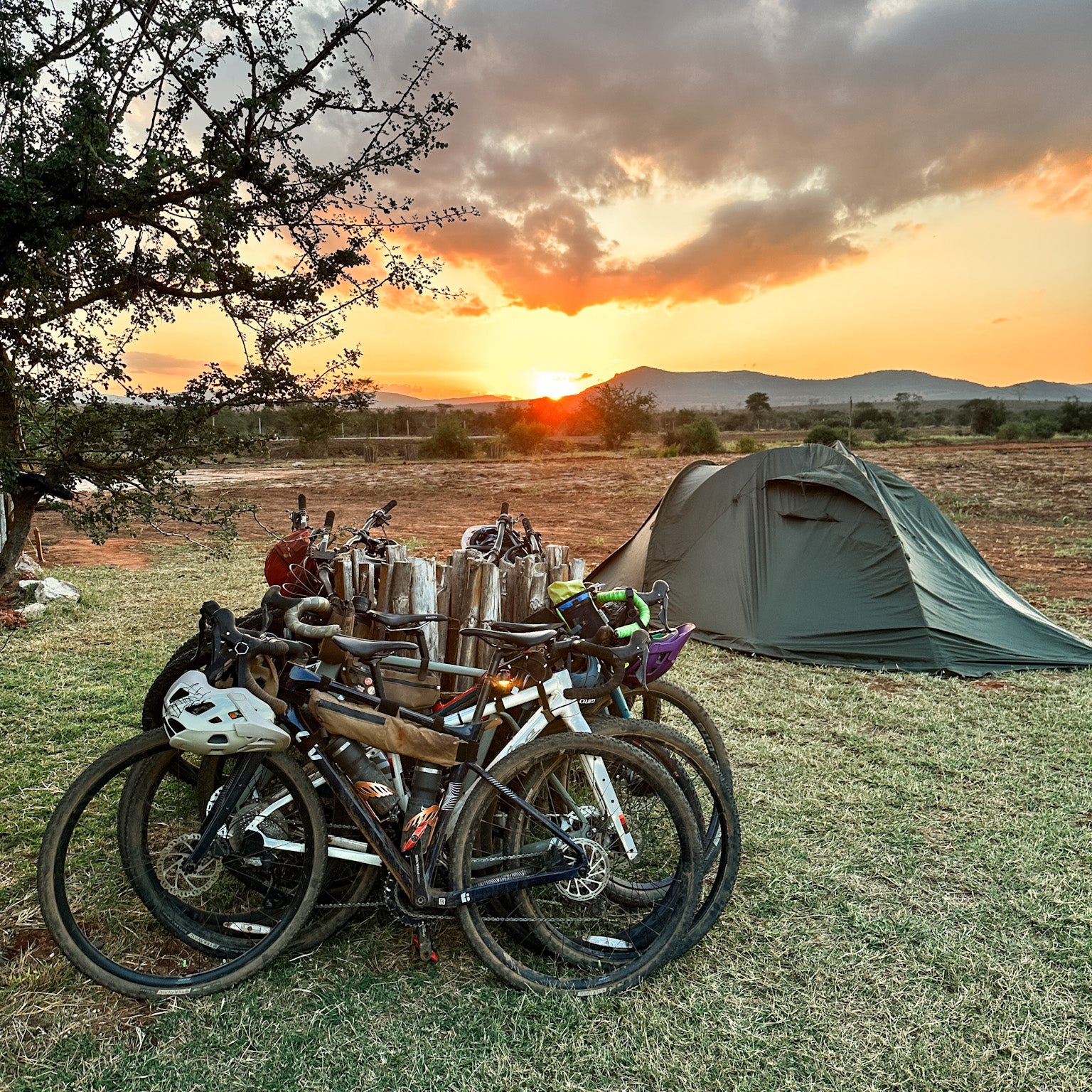 DAY 10, 69km +356km -300m: Ride to Maungu the back way on an old trading route. You will be greeted by the women of Zawadisha and spend the evening at the remote Kivuli Camp in the Tsavo Conservancy. Keep your eyes peeled for more elephants, giraffes, and zebra on the drive to the camp and your ears open for late night lion roars.