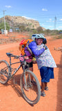 DAY 6, 50KM +888m -667m: We turn back east and head away from the Mara, leaving the plains behind and entering the hills. This day will be the queen's stage of the trip with the most climbing so far. After a tough day on the bike, it's nice to settle into camp, enjoy a hot shower, and clean away the iconic red dust of Kenya.