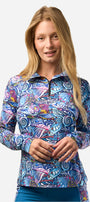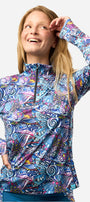 The quarter-zip closure with stand collar offers customizable coverage, while the chin guard keeps things comfortable when zipped up tight. Finished with the all-over Enchanted Grayling print, this sun shirt celebrates the vibrant, wild beauty that inspires every Fishe design.