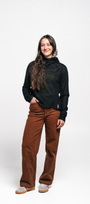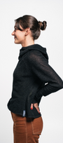 Built with a little ease and slightly shorter hem high/low shaping, pairs well with mid (or higher) rise bottoms well for a modern and versatile look