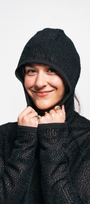 Scuba-style hood with ponytail exit for a trail-ready fit
