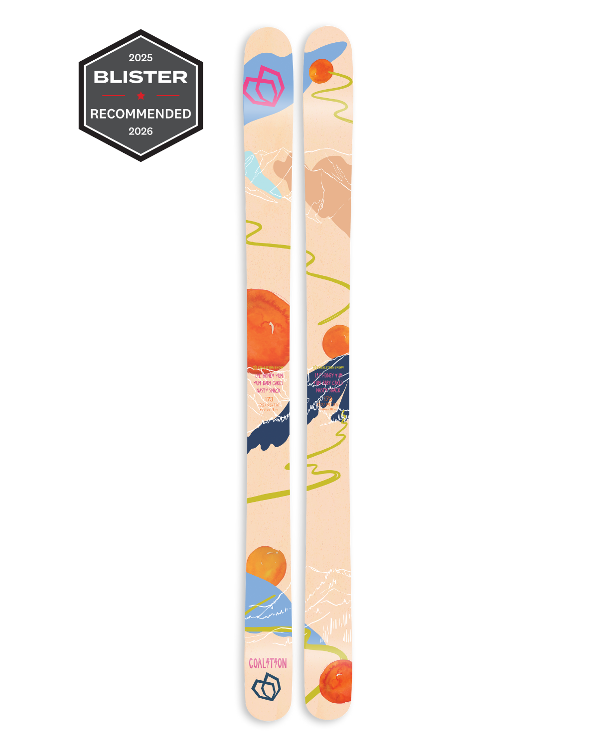 We spent three years designing, testing, and refining the Lil' Honey Yum Yum Baby Cakes Nasty Snack (Lil' Nasty for short), the newest ski in our lineup. We wanted to hit the sweet spot of a mid-fat ski that would perform in all conditions, in all terrain. And if you ask us, we nailed it. The Lil' Nasty is extra, in all the good ways: extra nimble, extra fast, and extra FUN. This ski is all about doing what you want, when you want to, and on your own terms.
