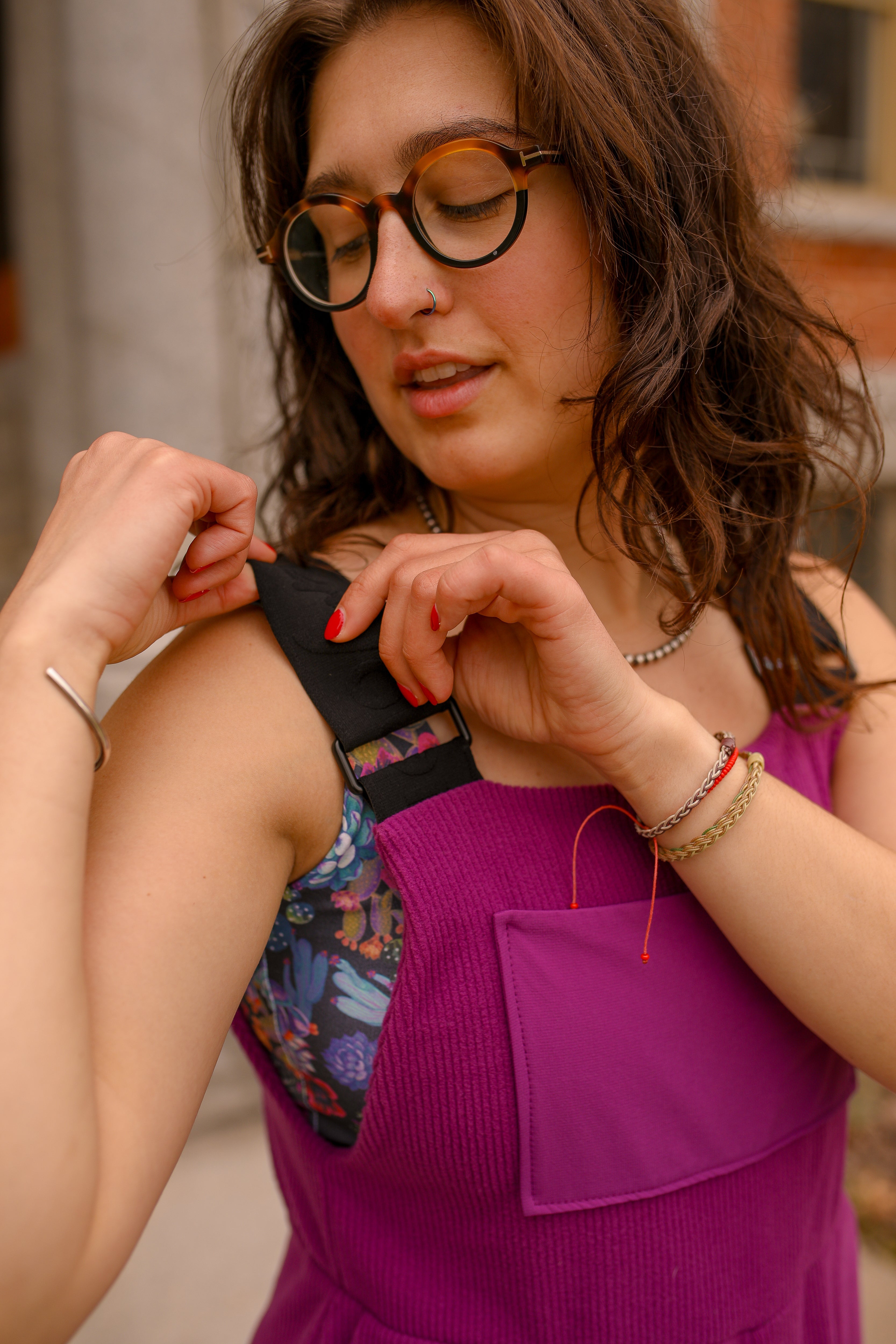Made from our Fresh Corduroy fleece (the absolute coziest)adjustable straps with NO buckles - just loosen and slide over your shoulders for easy on/off (this also helps fit a variety of leg and torso lengths - check out the sizing tab to see how they fit 6' tall gals!) subtle woven Youer branding on the straps-drawcord waist that cinches the front and back independently three pockets! Chest pocket made from our Everlast fabric (stretchy bio-nylon)Why are you still reading this?! Add them to your cart!