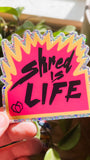 Our Creative Director, Andrea Slusarski, updated our best-selling, classic Shred the Patriarchy sticker with a new mantra: Shred is Life, because IFYKYK.