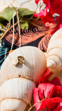 A handmade jewelry bag for gifting and/or protecting your jewelry is included