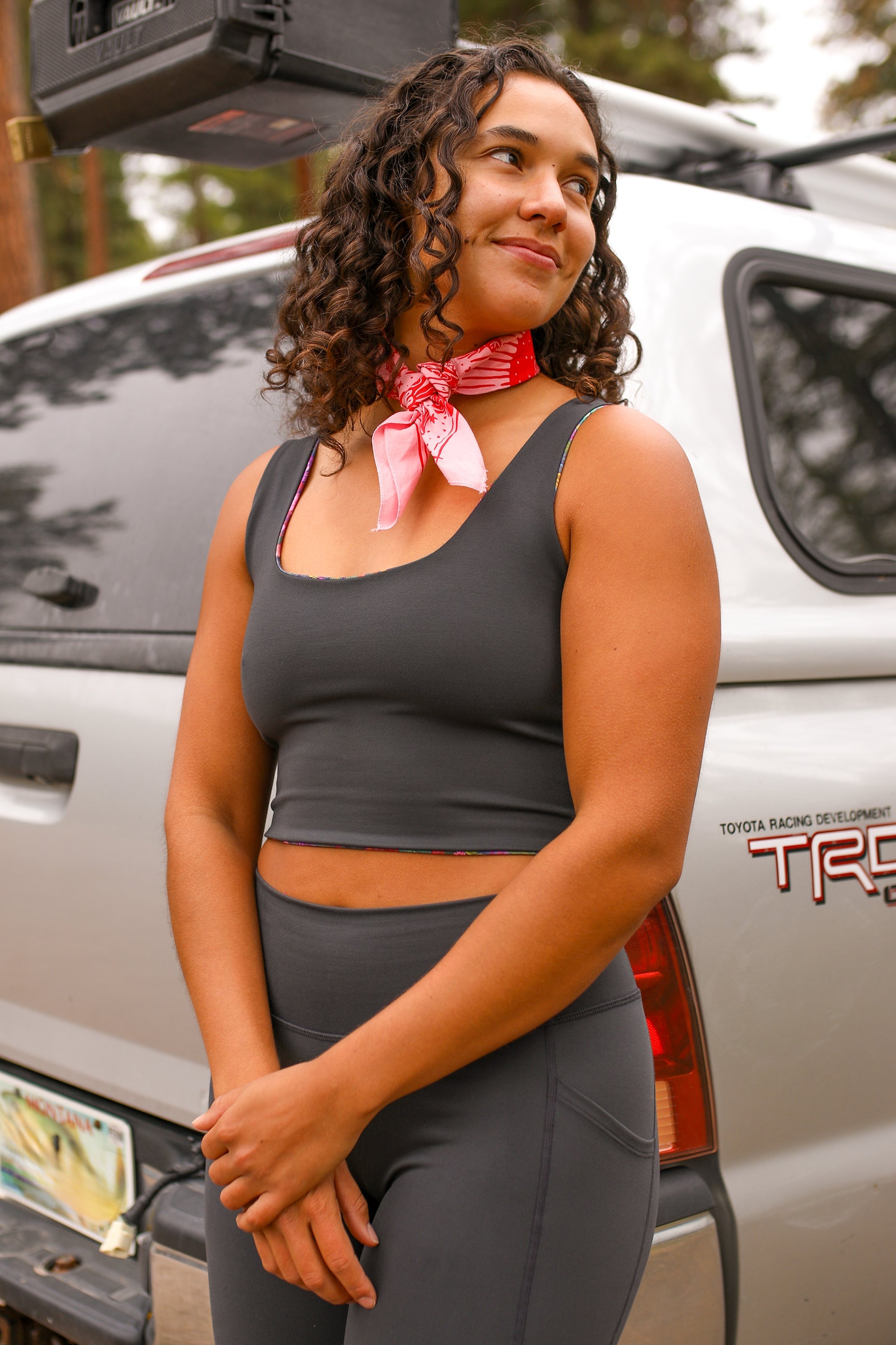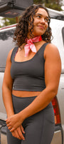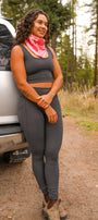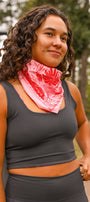 A lovely cotton, MADE IN USA bandana that's printed with custom artwork (by Pine Bones). The print celebrates Youer's most prolific customer locations (MT, WA, AK, CO) with flora and fauna and iconic mountain ranges of each of those places. Bitterroot, fireweed, paintbrush, grizzly & trout are among the illustrations.